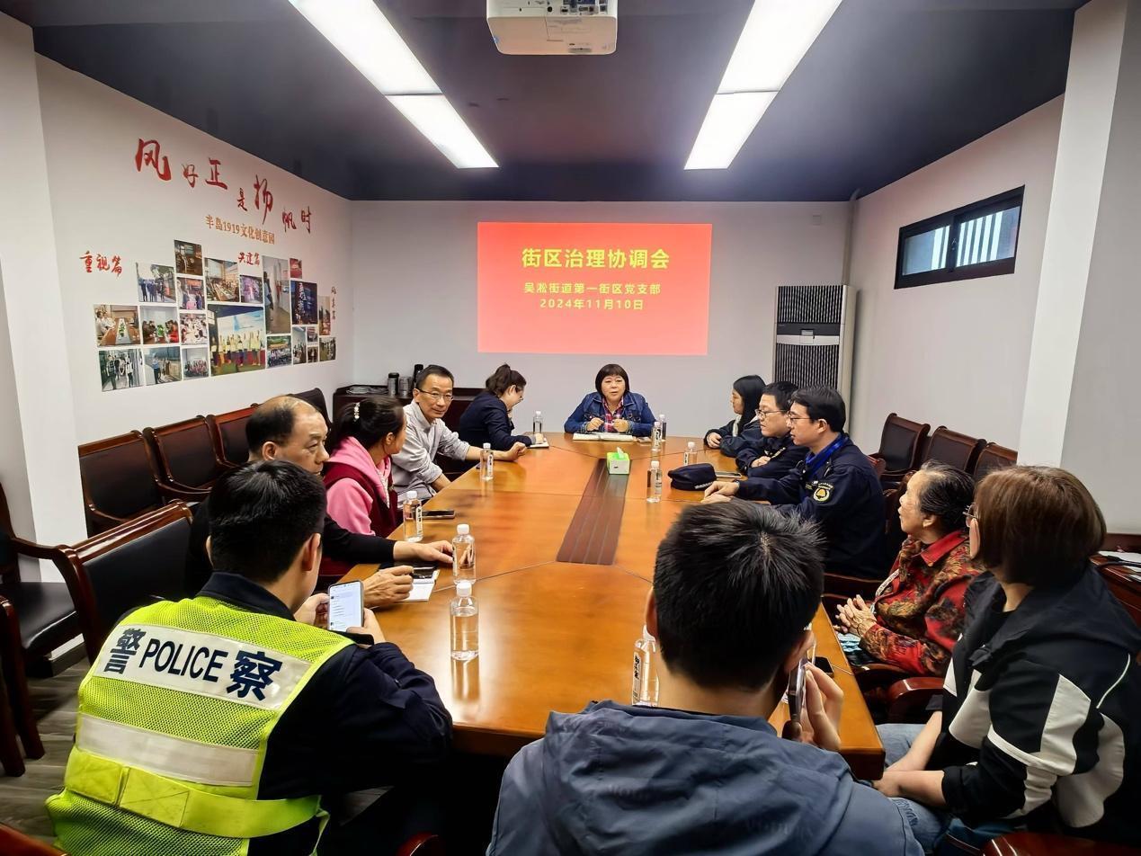 为了更好实现街事街议、街事街管、街事街办,郁金秀第一时间推动第一街区治理委员会的成立。街区治理委员会里面集合了街道、赋能团、园区、街区、派出所、市场所、城管、招商、居民区等多方面的人员力量,通过这个平台,打破围墙内外的壁垒,园区、街区、社区牵手,资源共享,优势互补,问题同解。